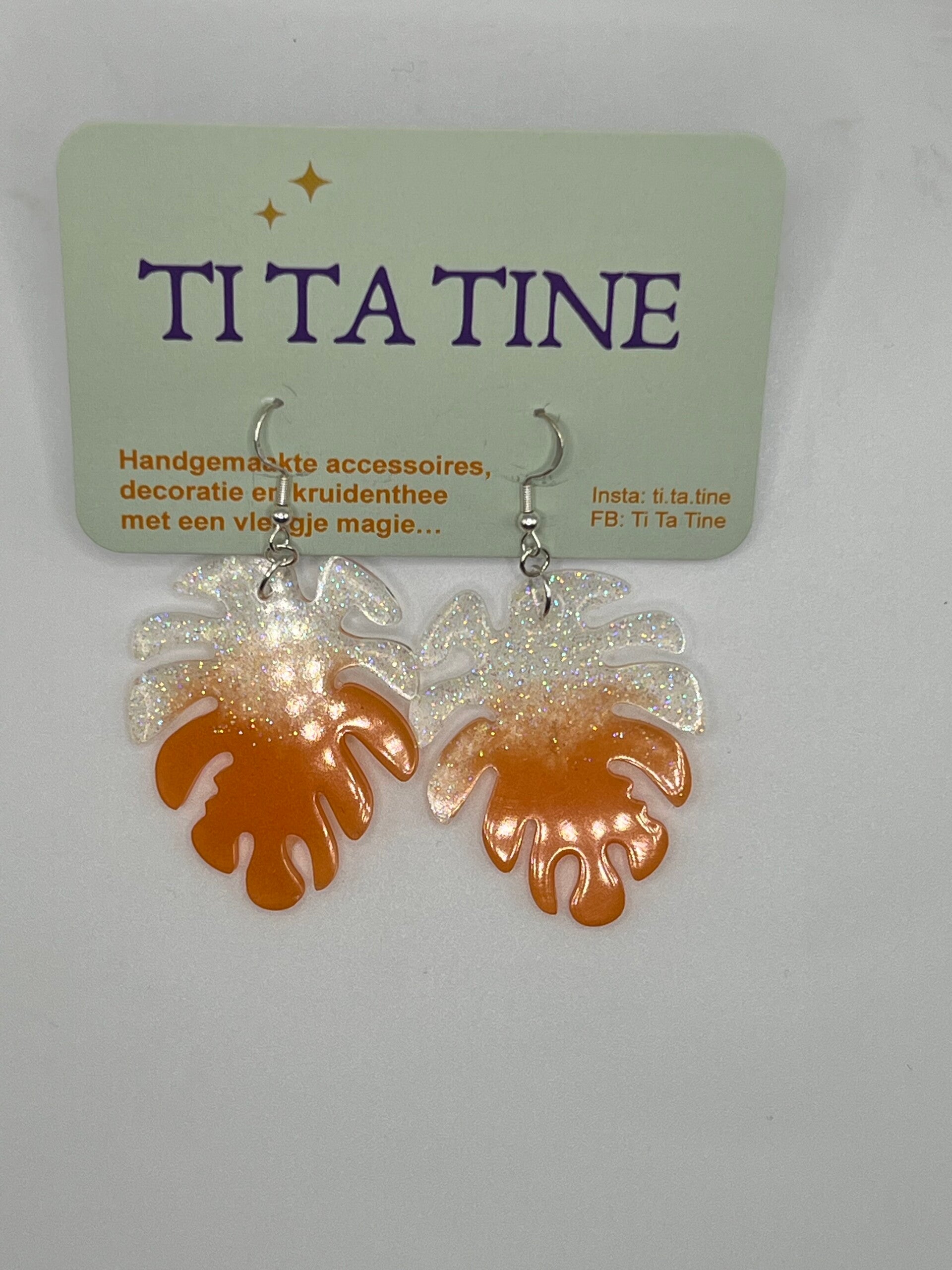 Oorbellen hangers zilver oranje / glitter
