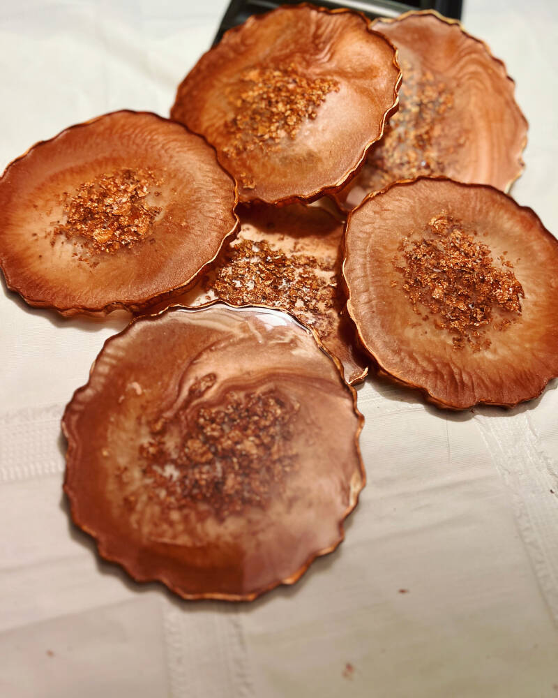 Luxecoasters met micaswirls en gouden, roségouden of zilveren flakes
